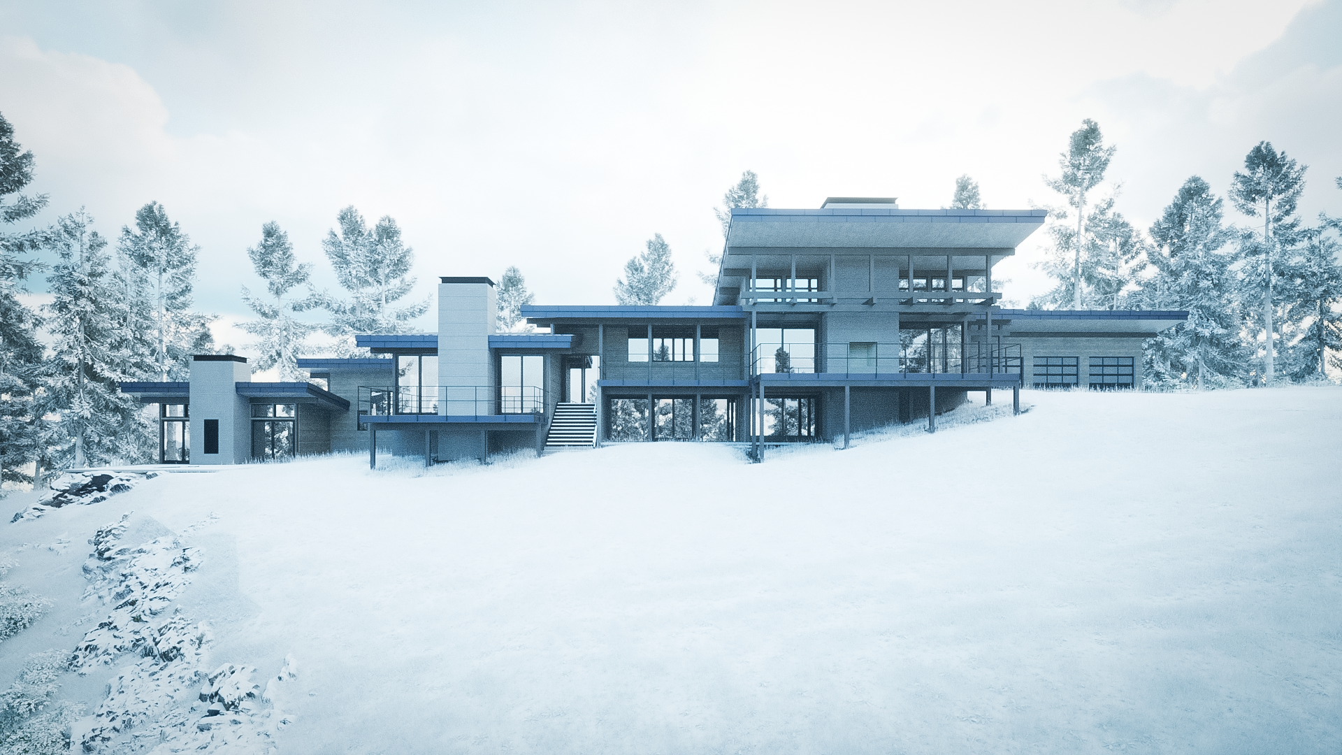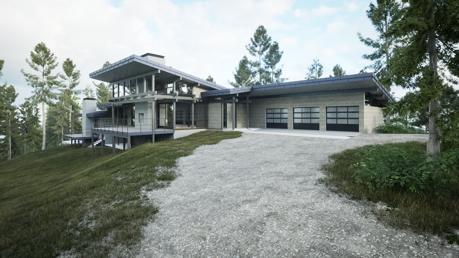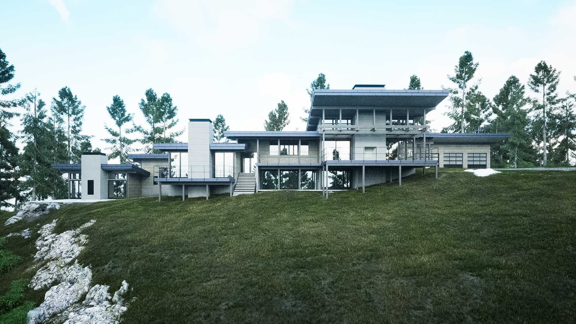 the convergence of site, structure, and program. The residence's unique ridge-top site established