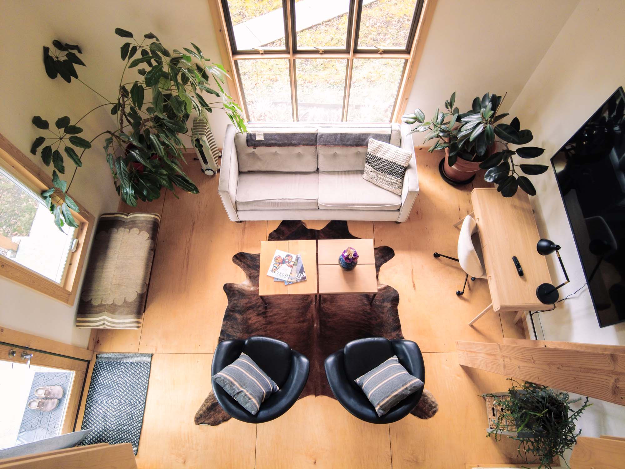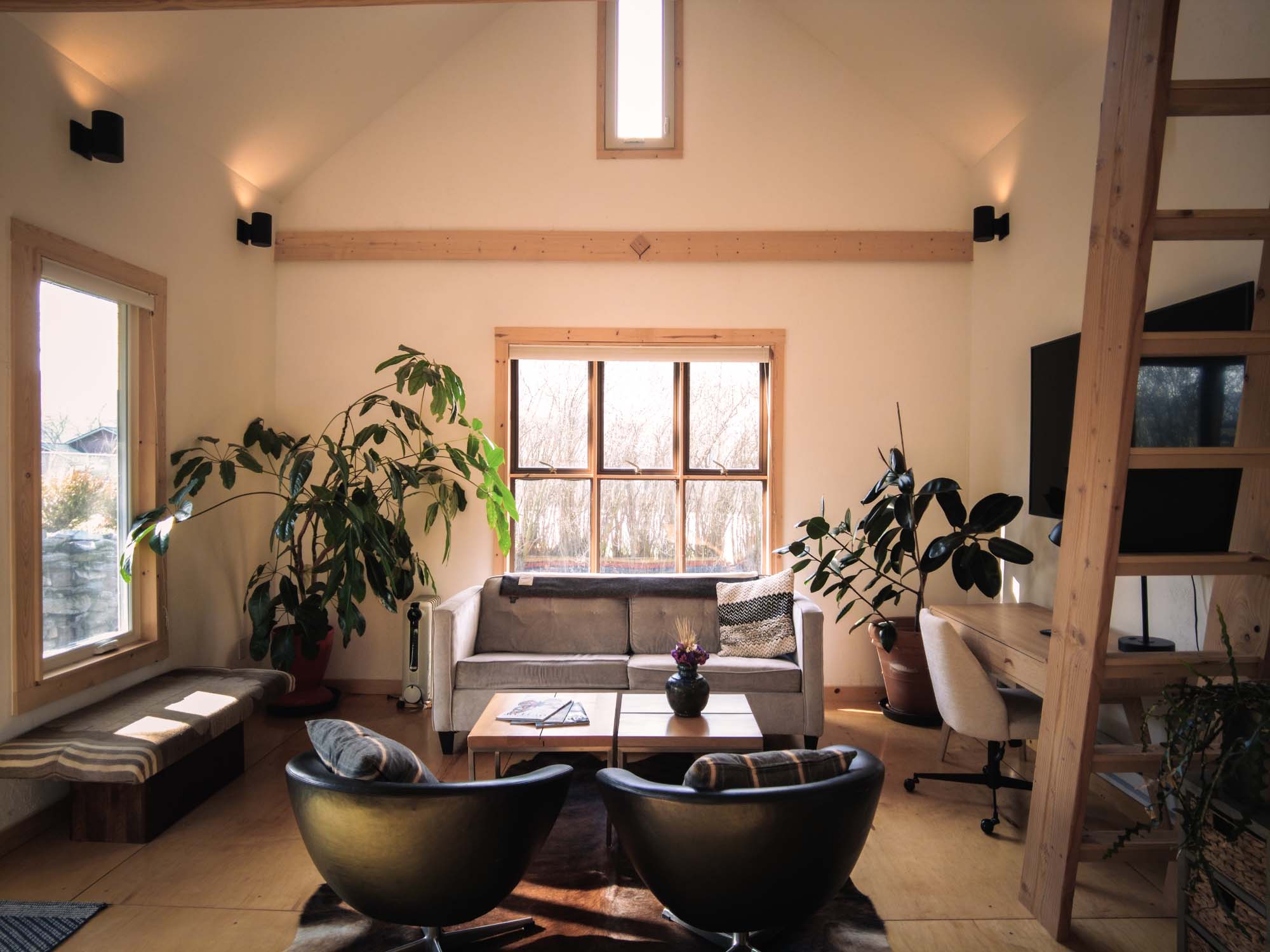 lots of natural light and views of Mount Jumbo. The owner is an architect and carpenter creating many